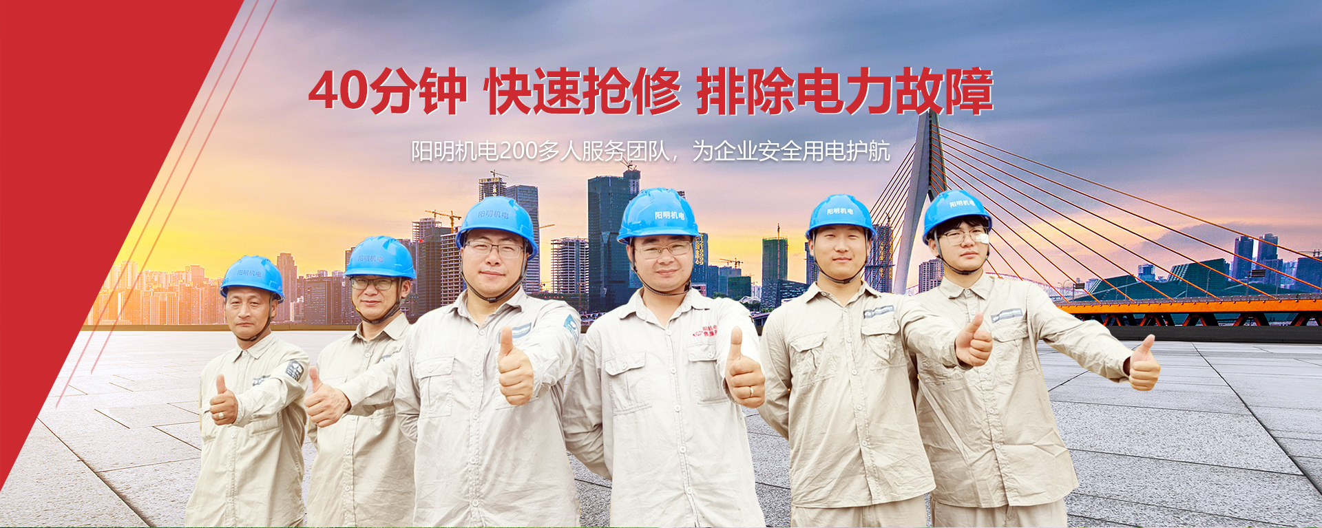 陽明機電自有30人服務團隊24小時待命45分鐘抵達現場,40分鐘出具診斷報告,40分鐘解決快修故障恢復供電。
